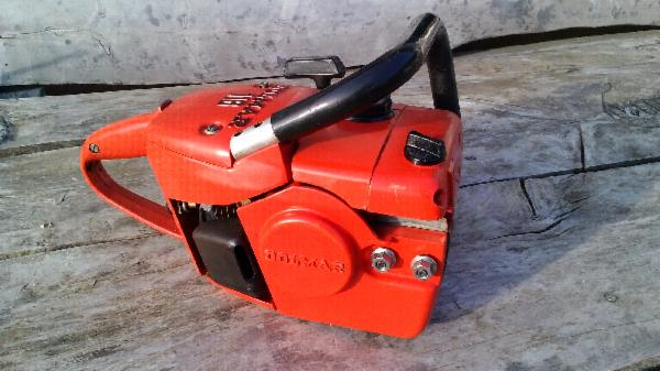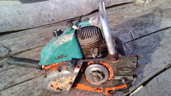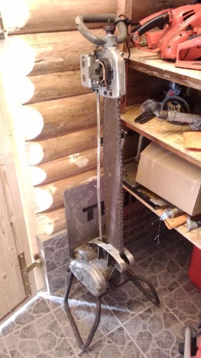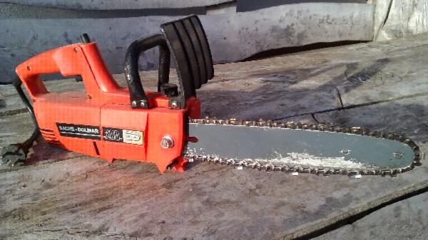 Die Dolmar-Trennsäge wurde als stationäre oder transportable Säge hergestellt. Dazu gehört ein Gestell, auf dem die Säge durch den Stamm geführt wurde.